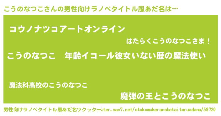 | 女子向けラノベタイトル風あだ名 | 『こうのなつこの玉の輿計画!』 |