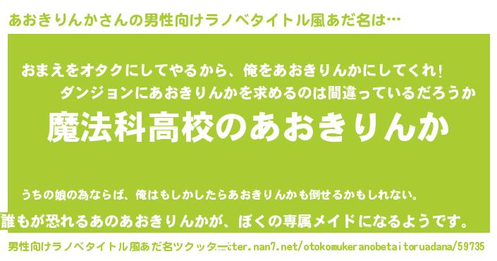 | ヘコむあだ名 | 『あおきりんか(爆)』『あおぷりん』 |