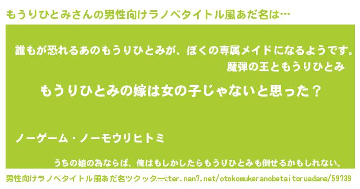 | ヒーロー風カッコイイあだ名 | 『炎刃騎士モウ』『ネオモウリヒトミ』 |