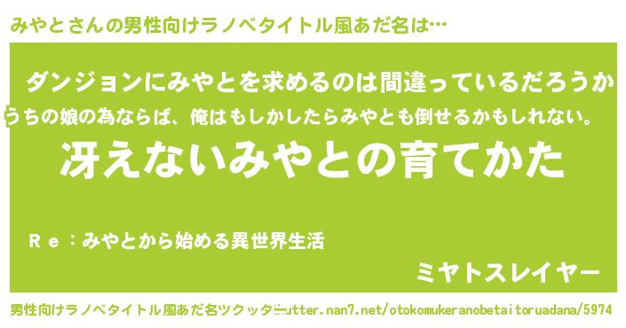 | 意味不明あだ名 | 『とにかく怪しいみやと』『自称みやと』 |