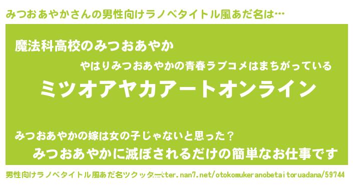 | 女子向けラノベタイトル風あだ名 | 『みつおあやか姫と円卓の騎士』 |