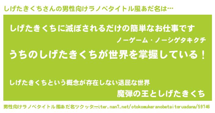 | 意味不明あだ名 | 『住所不定無職しげたきくち(62歳)』 |