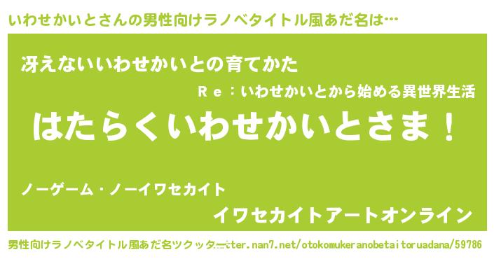 | 肩書あだ名 | 『いわせかいとマネージャー』 |