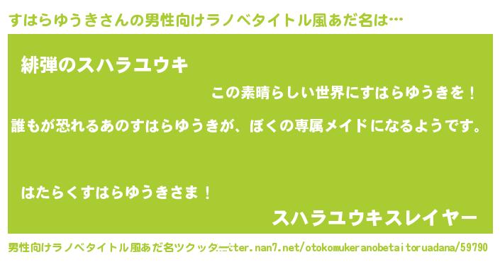 | ヘコむあだ名 | 『すはらゆうき(笑)』『すはにゅー』 |