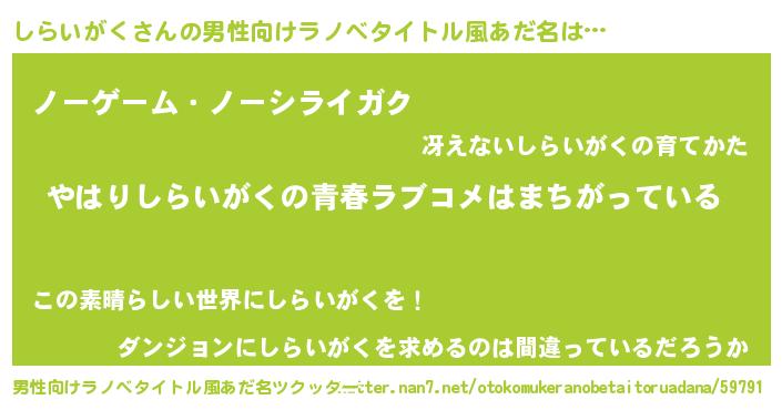 | 意味不明あだ名 | 『しらいがくフォーエバー』 |
