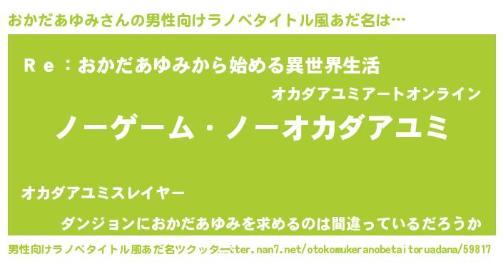 | 意味不明あだ名 | 『眠気覚ましガムおかだあゆみ味』 |