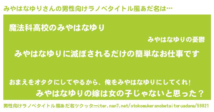 | ヒーロー風カッコイイあだ名 | 『最強戦士ミヤハナユリ』『黄金騎士ミヤ』 |