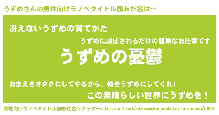 | ヘコむあだ名 | 『うずにゅー』『うずめ(爆)』 |