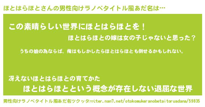 | 女子向けラノベタイトル風あだ名 | 『ほとはらほと伯爵の花嫁』 |