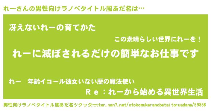 れーさんの男性向けラノベタイトル風あだ名をツクッター!
