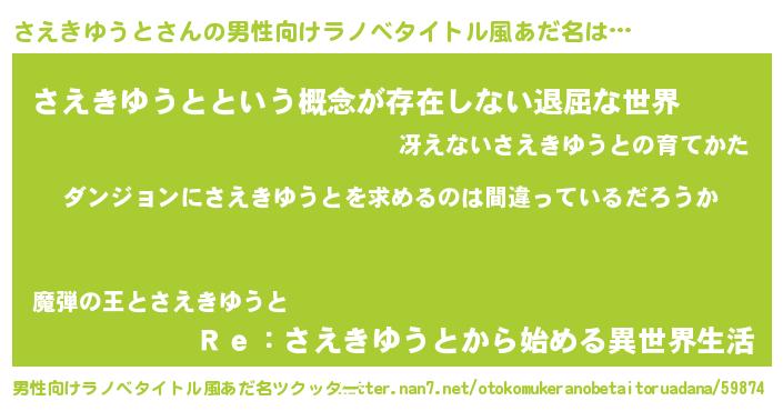 | 女子向けラノベタイトル風あだ名 | 『さえきゆうとは平凡を望む』 |
