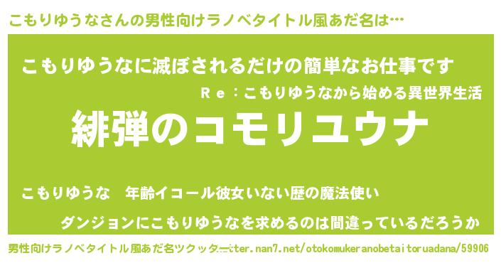 | 胡散臭い通販商品みたいなあだ名 | 『信頼と実績のペンダント…その名も「こもりゆうな」』 |