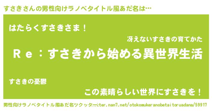 | ヒーロー風カッコイイあだ名 | 『サイバー戦士スサキ』『仮面スサダー』 |