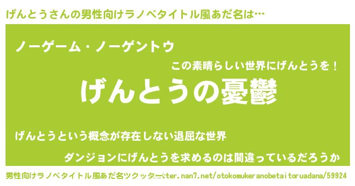 | 女子向けラノベタイトル風あだ名 | 『(仮)げんとうのやんごとなき事情』 |