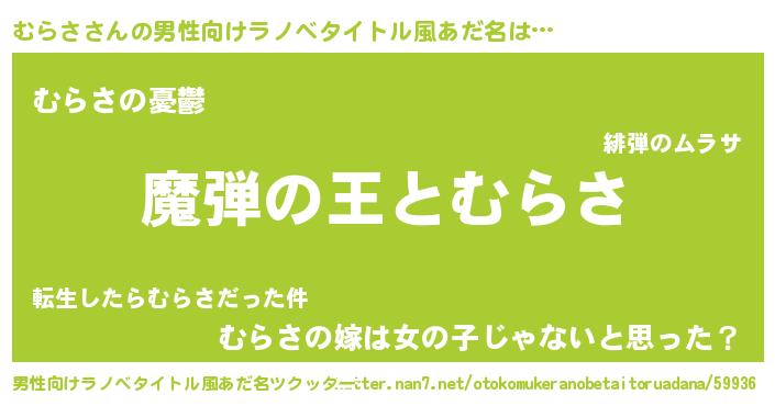 | 女子向けラノベタイトル風あだ名 | 『むらさが死なない童話 林檎のむらさの診療簿』 |