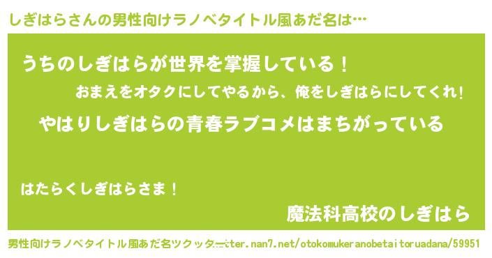 | 意味不明あだ名 | 『しぎはらフォーエバー』『自称しぎはら』 |