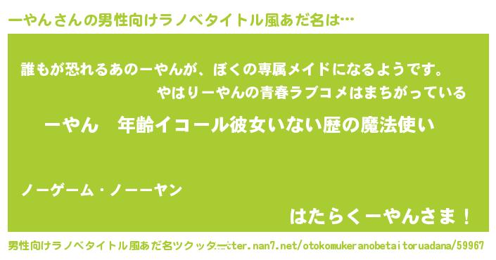 | 意味不明あだ名 | 『ヨモギ科ーやん属』『永久保存ーやん』 |