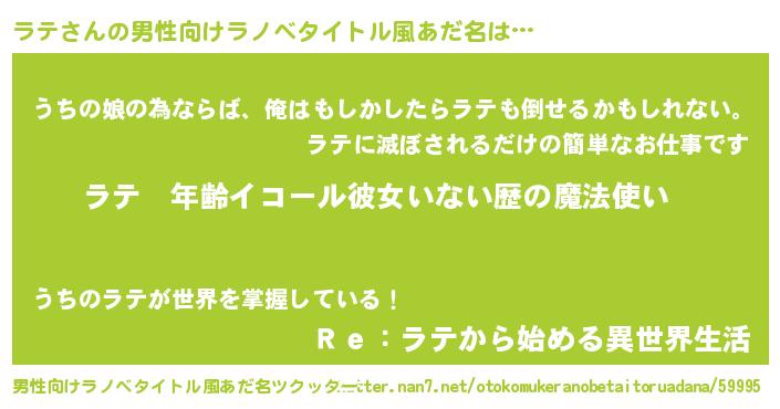 | 胡散臭い通販商品みたいなあだ名 | 『運命の人と巡り会える高級そうな壺…その名も「ラテ」』 |