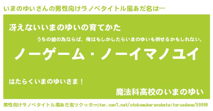 | 伝説のあだ名 | 『救世主となる技術者いまのゆい』 |