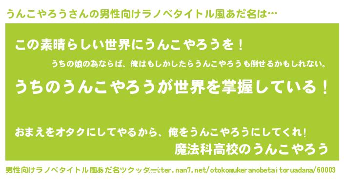 | 意味不明あだ名 | 『住所不定無職うんこやろう(79歳)』 |