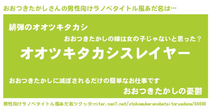 | 胡散臭い通販商品みたいなあだ名 | 『必ず成功する霊験あらたかなお札…その名も「おおつきたかし」』 |
