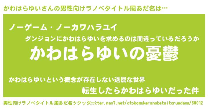 | ヒーロー風カッコイイあだ名 | 『スーパーカワハラユイ』『銀牙騎士カワ』 |