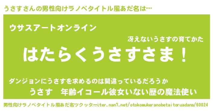 | ヘコむあだ名 | 『うさにゅー』『うさ太郎』 |