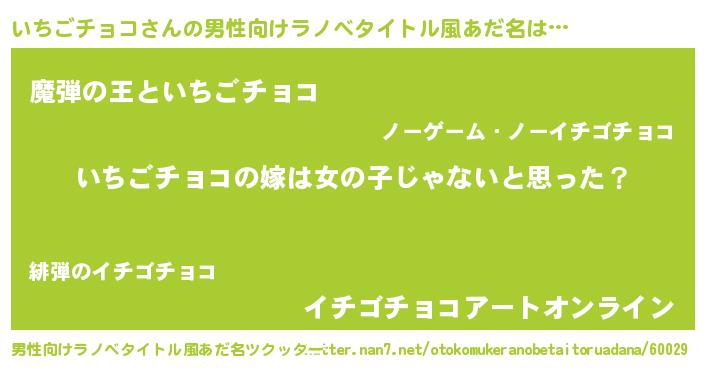 | 女子向けラノベタイトル風あだ名 | 『いちごチョコの卵を拾いまして』 |