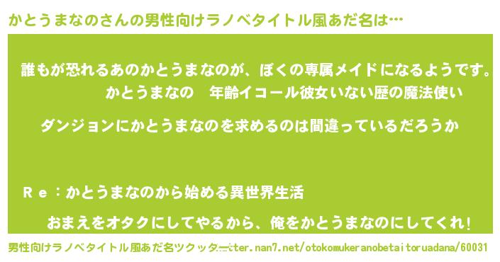 | 胡散臭い通販商品みたいなあだ名 | 『伝統あるサプリメント…その名も「かとうまなの」』 |