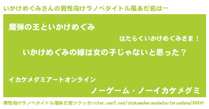 | ポケモン風あだ名 | 『ヒイカケメグミ』『イーカイ』 |