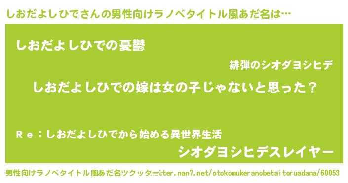 しおだよしひでさんの男性向けラノベタイトル風あだ名をツクッター!