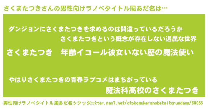 | 女子向けラノベタイトル風あだ名 | 『さくまたつきの玉の輿計画!』 |