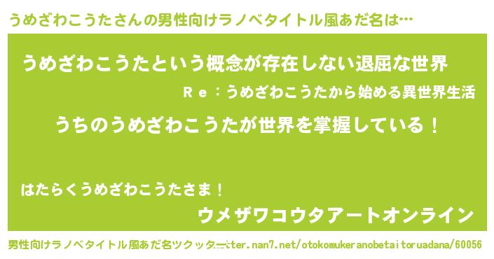 | ヘコむあだ名 | 『うめざわこうた(苦笑)』『うめもー』 |