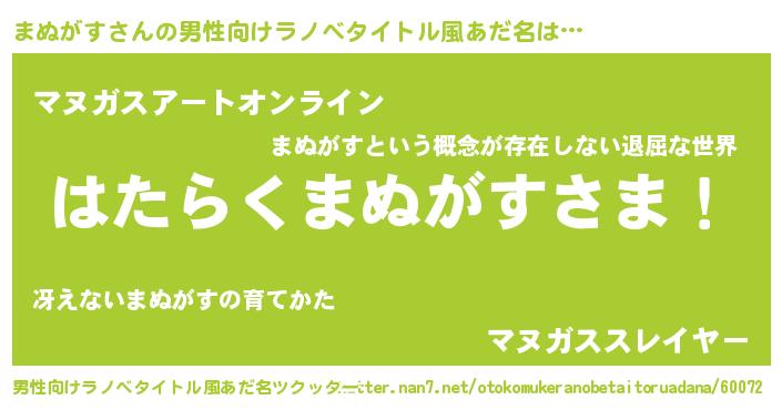 | 胡散臭い通販商品みたいなあだ名 | 『必ず成功する霊験あらたかなお札…その名も「まぬがす」』 |