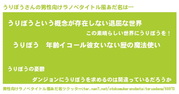 | 女子向けラノベタイトル風あだ名 | 『うりぼうの玉の輿計画!』 |