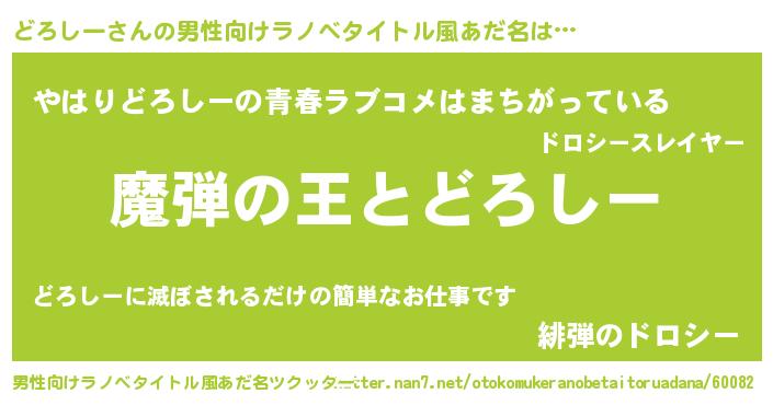 | 意味不明あだ名 | 『住所不定無職どろしー(89歳)』 |