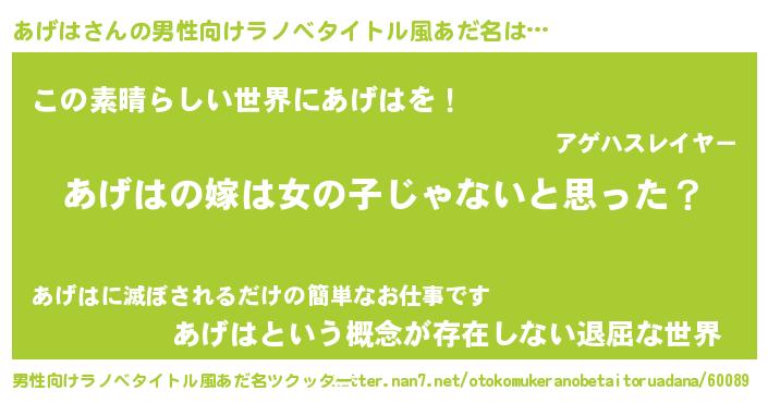| ヘコむあだ名 | 『あげを』『あげは(笑)』『あげもー』 |