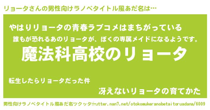 | ヒーロー風カッコイイあだ名 | 『サイバー戦士リョータ』『ネオリョータ』 |
