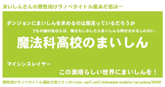 | 女子向けラノベタイトル風あだ名 | 『まいしんなんてお断りですっ。』 |