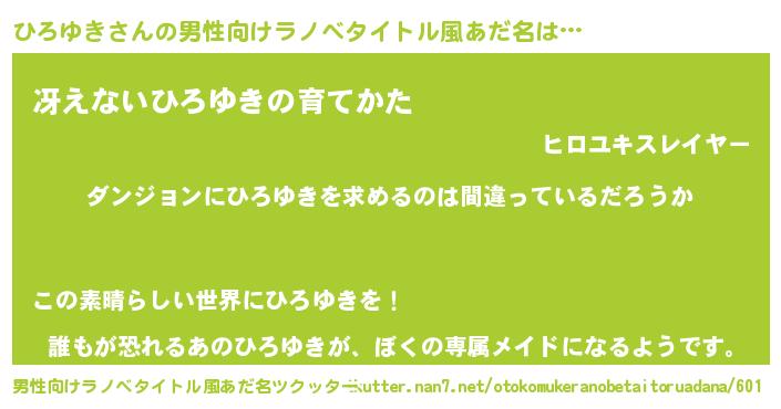 | 女子向けラノベタイトル風あだ名 | 『ひろゆきの卵を拾いまして』 |