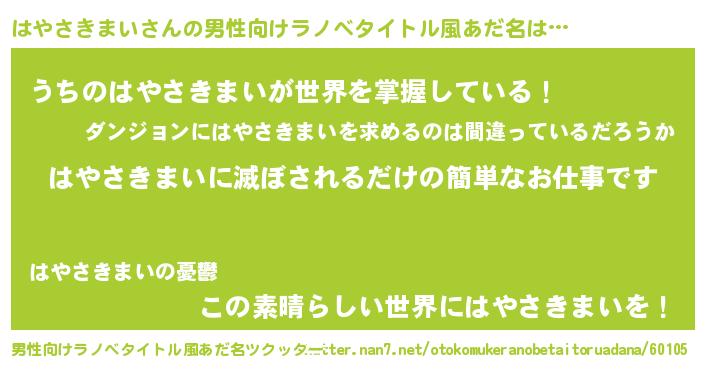 | 意味不明あだ名 | 『住所不定無職はやさきまい(40歳)』 |