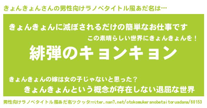 | 女子向けラノベタイトル風あだ名 | 『シンデレラきょんきょん家の靴箱館』 |