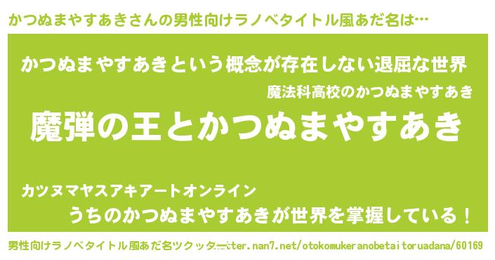 | 料理風あだ名 | 『かつぬまやすあきのカルパッチョ風』 |