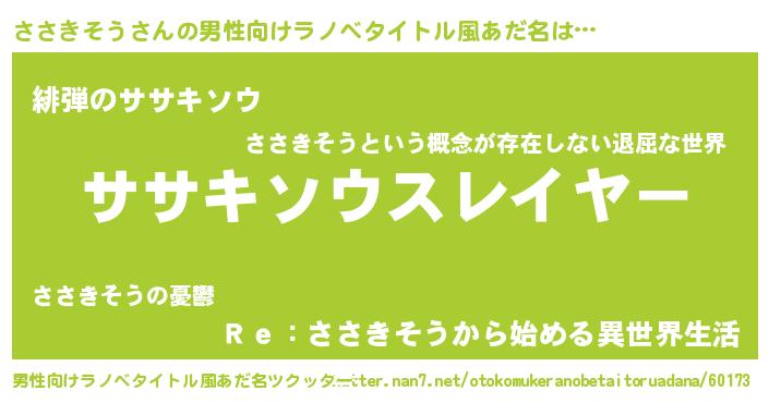 | 伝説のあだ名 | 『聞きしに勝る勇者ささきそう』 |