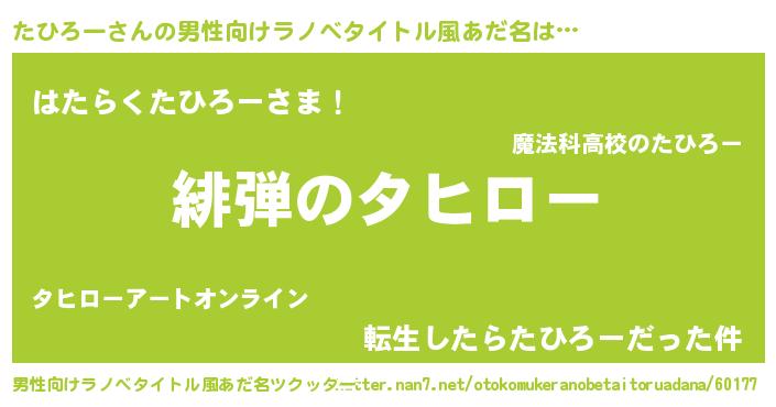 | ヒーロー風カッコイイあだ名 | 『ウルトラ戦士タヒロー』『魔戒騎士タヒ』 |