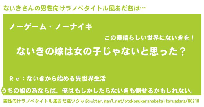 ないきさんの男性向けラノベタイトル風あだ名をツクッター!