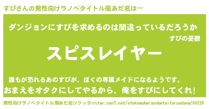 | ヒーロー風カッコイイあだ名 | 『黄金騎士スピ』『正義の使者すぴ』 |