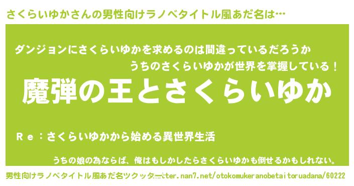| 意味不明あだ名 | 『住所不定無職さくらいゆか(9歳)』 |