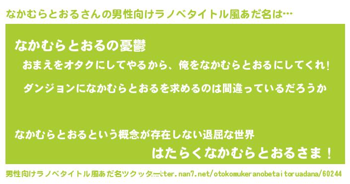 | 意味不明あだ名 | 『とにかく怪しいなかむらとおる』 |