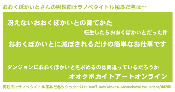 | 女子向けラノベタイトル風あだ名 | 『横柄おおくぼかいとと宰相陛下』 |